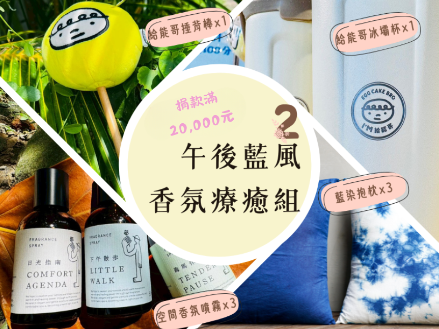 2-單筆捐款滿20,000元,或定期定額每月3,000元,即贈午後藍風・香氛療癒組